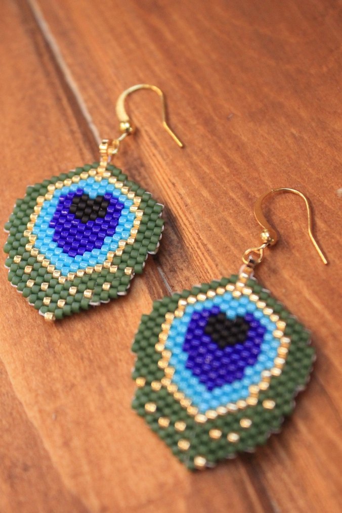 Kısa uzunlukta, renkli boncuk işleme detaylı turkuaz bohem küpeler, açık hava etkinlikleri için uygundur.