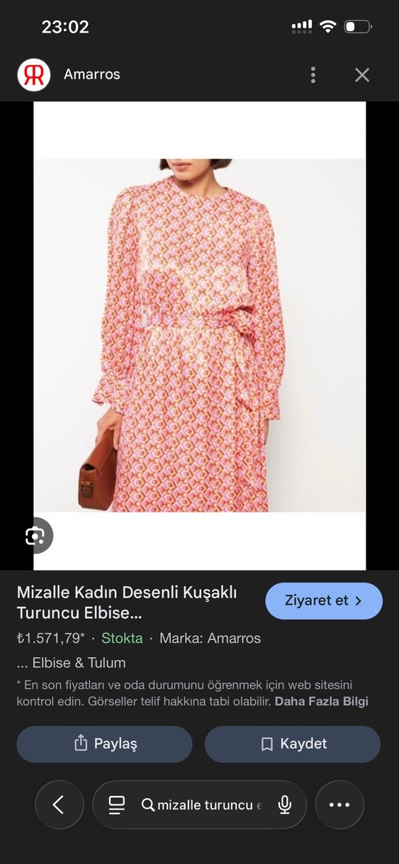 Pembe tonlarda, desenli ve pileli sentetik kumaştan uzun, bol kesim elbise. Kayık yaka ve ince askılı kollarıyla modern, Paris esintili rahat bir tarz sunar. Günlük kullanım için uygundur.