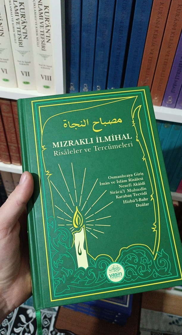 Yeşil kapaklı Mızraklı İlmihal kitabı, dualar, risaleler ve tercümeleri içerir. Osmanlıcaya giriş, iman ve İslam risalesi, Nesefi Akaidi, Siracal Muhtedi, Karabaş Tecvidi, Hizbu'l-Bahr ve dualar yer alır.
