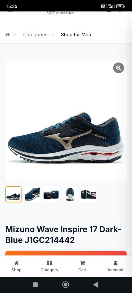 Mizuno Wave Inspire 17, koyu mavi renkte, kauçuk tabanlı ve cırt cırtlı bağlama özellikli. Spor ve günlük sokak stiline uygundur.