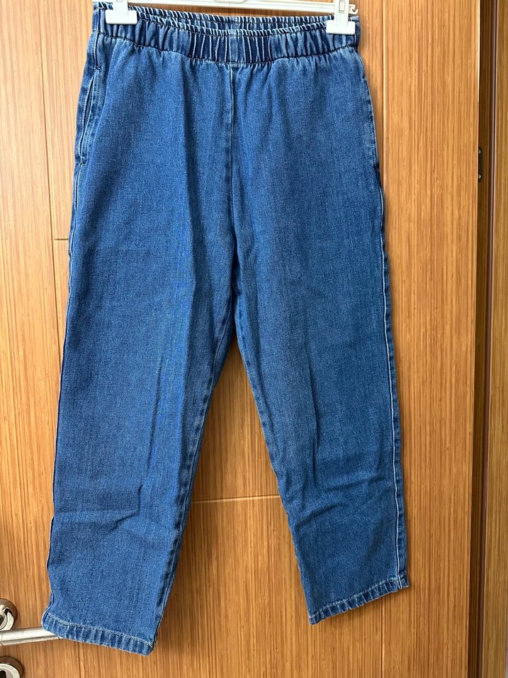 Kadınlar için bol kesim, normal midi boyda parlak mavi denim pantolon. Günlük rahat kullanıma uygun, zahmetsiz şıklık sunar. 38 beden uyumludur