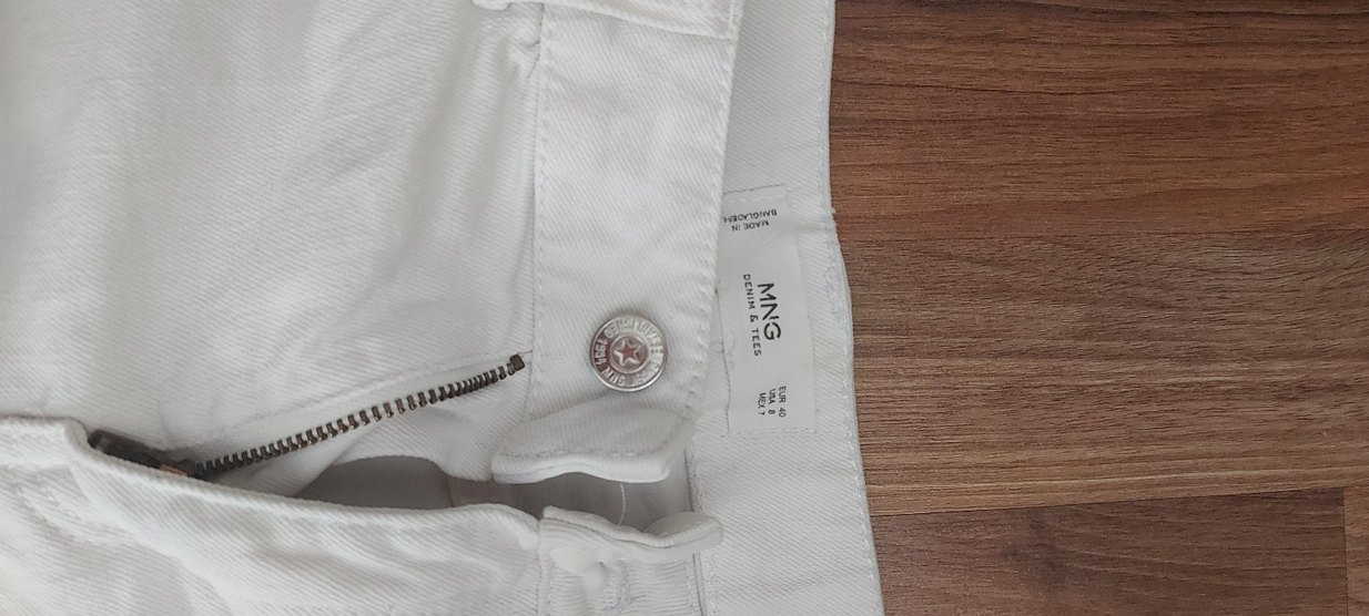 MNG markalı beyaz ve gri tonlarda minimalist erkek rozeti, trend sokak giyimi için uygundur. ".MNG.." işaretli, denim tarzlarına uyum sağlar.