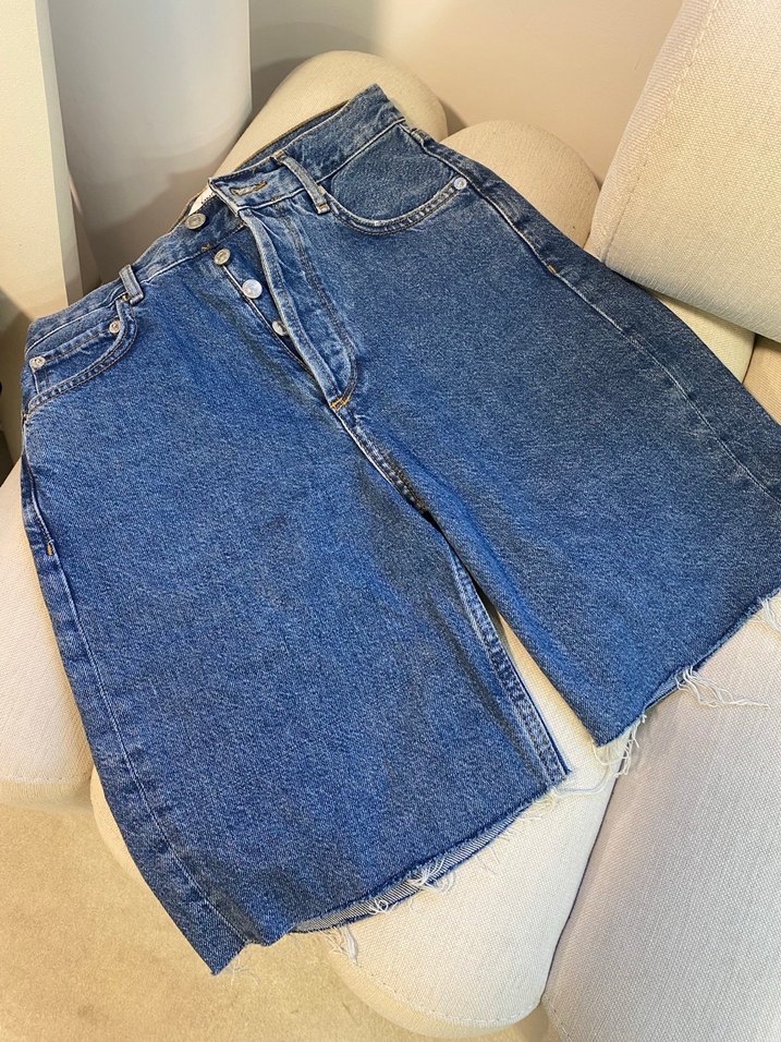 MNG Düğmeli Mavi Kadın Denim Midi Jean