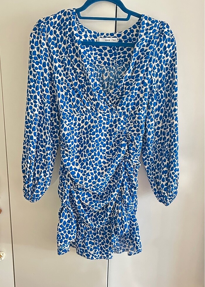 Canlı mavi-beyaz deseniyle dikkat çeken, vücuda oturan kesimiyle feminen bir duruş sunan MNG marka elbise. Sadece bir kez giyildi, tertemiz durumda. Hafif dökümlü kumaşı ve büzgü detaylarıyla hem gündüz hem akşam kombinlerine uyum sağlar. Hiçbir deformesi yoktur. S ve M BEDENLER için uyumludur.