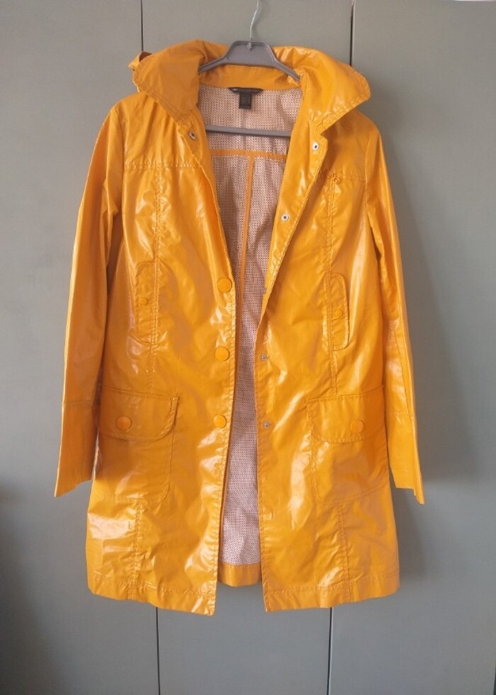Mng marka M beden sarı yağmurluk..Bende bu uygulamadan çok severek aldım ama bir kere bile giyemedim..Taşınma sebebi ile çok fazla küçülmem gerekiyor gardrop detoksuyla elden çikarıyorum çok şeyi..Ürünün bazı yerlerinde üst katmanın yıpranması ile oluşan soyulmalar var.Çoğu da gizli yerlerde..Kullanıma engel değil..Mng logosunun tutturulmasi gerekiyor..Kapuşonu çıkarılabiliyor..Iç yakasında bir soyulma var ama icerde kalıyor görülmüyor.Sarısı çok çok güzel,aslında tam bir Mng kalitesi ama bu tarz yagmurluklarda olan bir soyulma bu malesef..Onun dışında Mng kalitesi