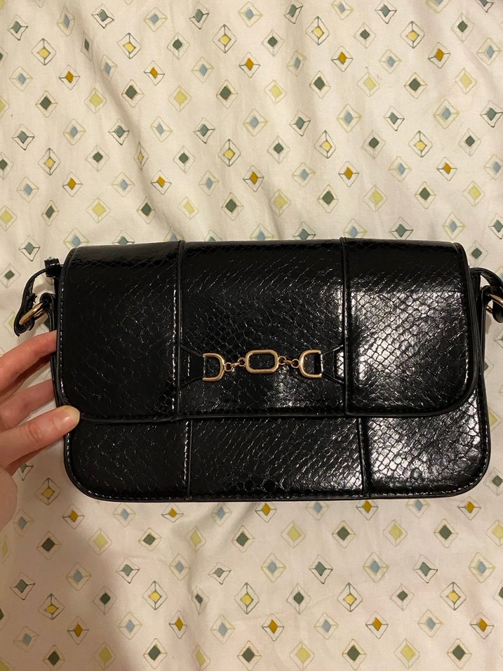 MNG Siyah Yılan Derisi Desenli Deri Çanta