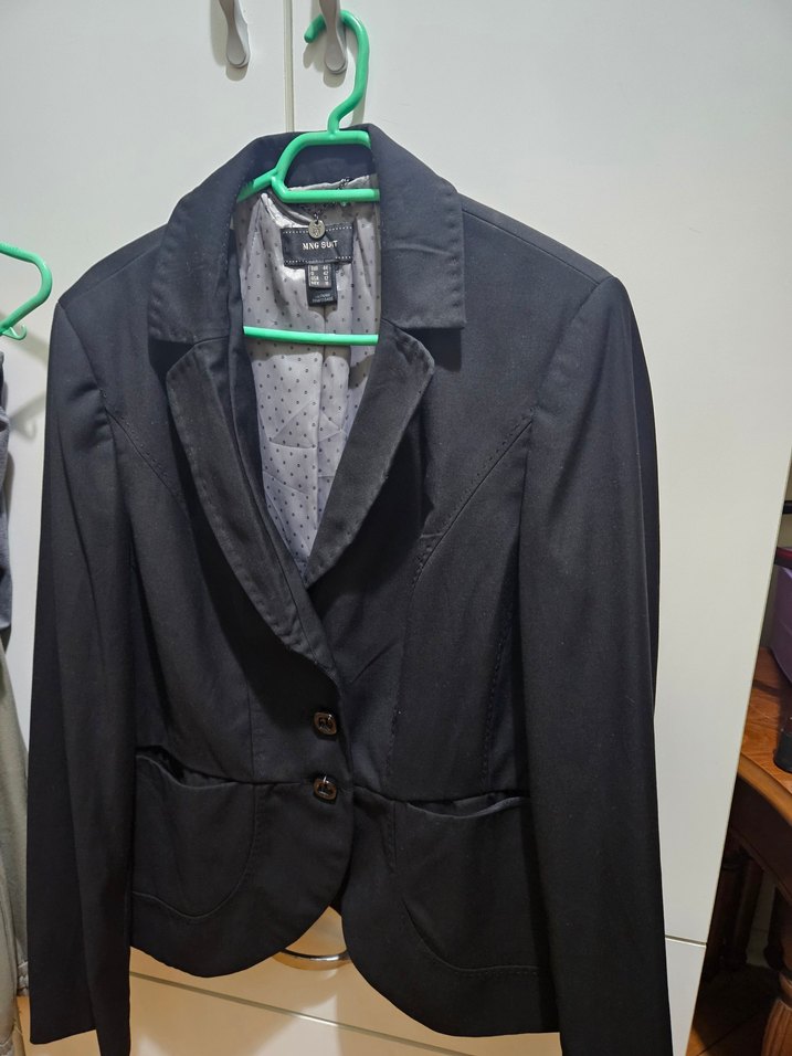 MNG Suit Kadın ceketi, siyah renkte ve biker tarzında. EUR 44, USA 12, MEX 11 bedenlerinde, yeşil detaylar ve grunge punk havası taşır.