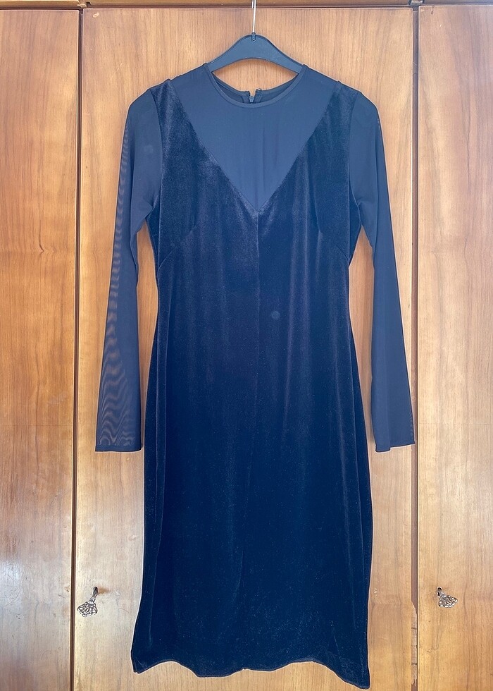 Mango Suit kadife tül detaylı şık elbise. Etek baskısı açılmıştır, isterseniz yaptırabilirsiniz. Ölçüler fotolarda. Yılbaşı vitrininde vardı. Asla modası geçmez şık bir abiyedir. Astarlıdır.
