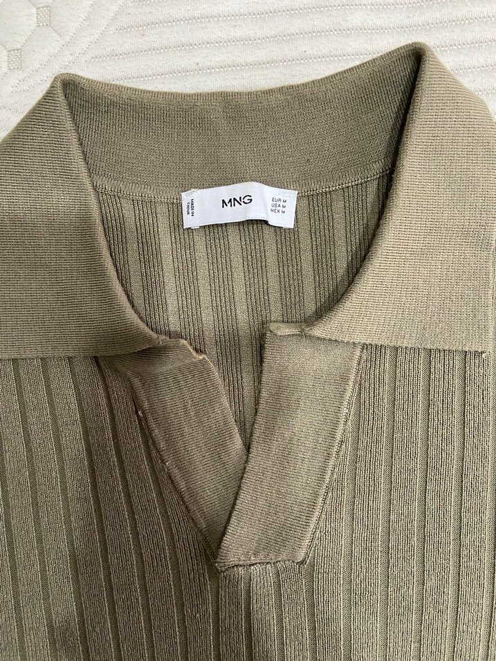 Bej ve haki karışımı renkte, MNG markasına ait triko kazak. Yaka detaylı, kısa kollu ve normal kesimdir. Minimalist tarzda, günlük kullanıma uygundur.