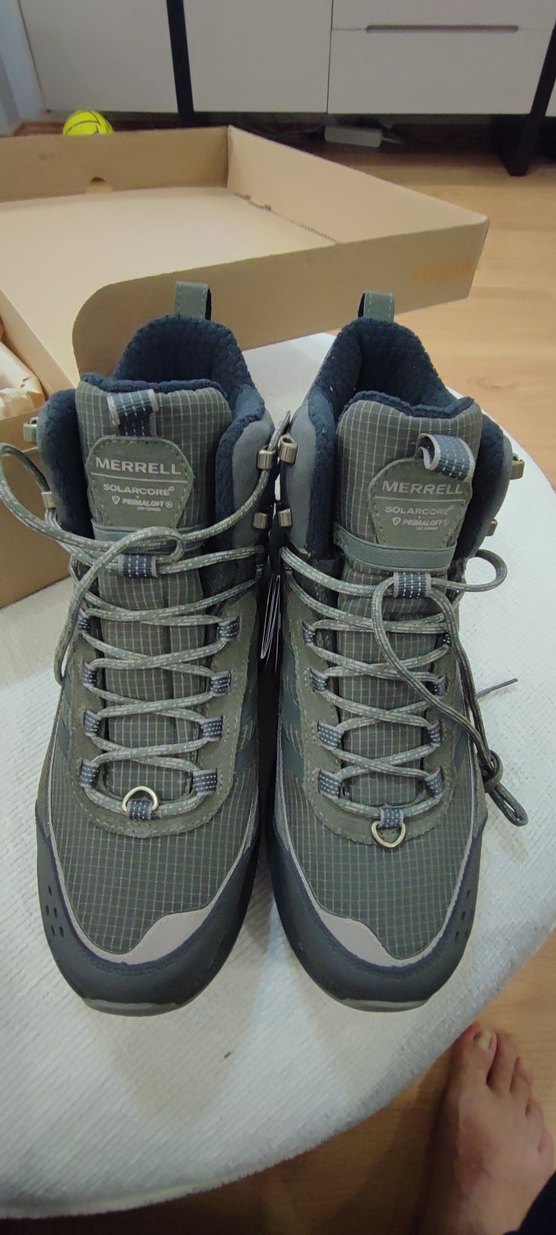 44.5 Numara sıfır etiketli Şu geçirmez Merrell markalı gri soket bağcıklar, streetwear tarzı için uygun, athleisure ayakkabılarla uyumlu. Dayanıklı ve şık bağcıklar.