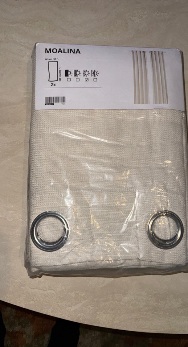 MOALINA marka, gri baskılı ve metal halkalı 2'li fon perde. Beyaz renkte, çağdaş tarza uygun. Yeni alındı kullanılmadı