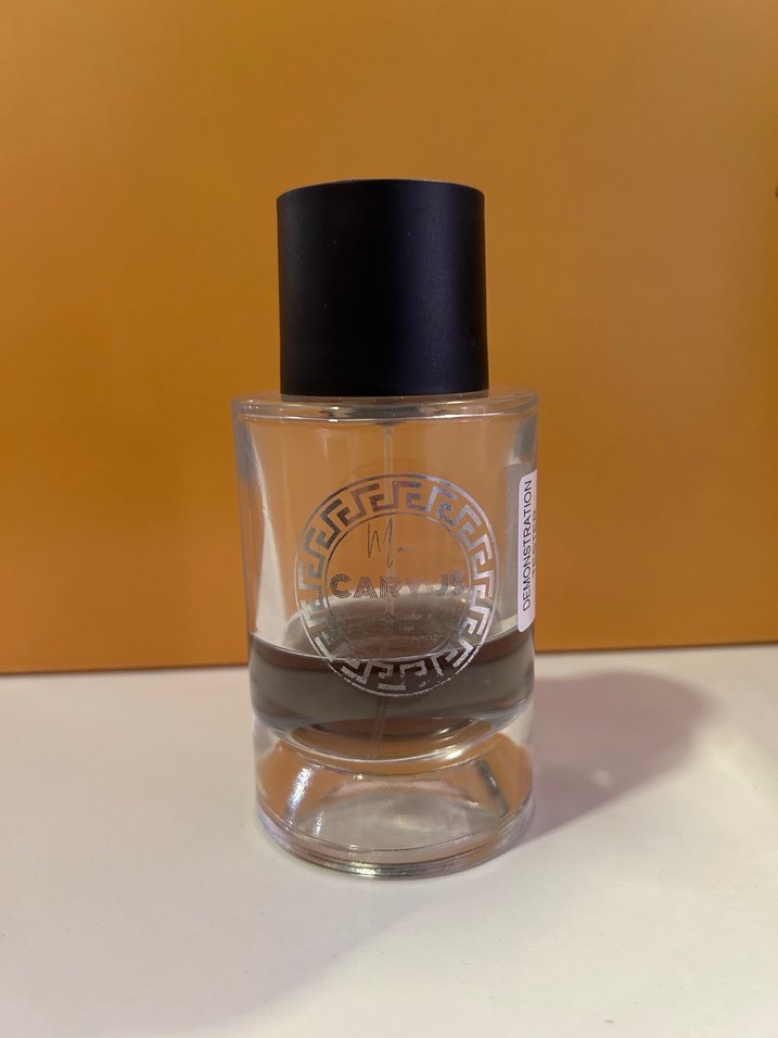Mocha caryus markalı, siyah kapaklı şeffaf cam şişede erkek parfümü. Klasik ve şık tasarıma sahip.