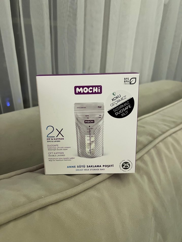 Mochi anne sütü saklama poşetleri çift katmanlı fermuar ve kokusuz tasarıma sahiptir. BPA içermez. Her pakette 25 adet, 2 katmanlı fermuarlı poşet bulunur.