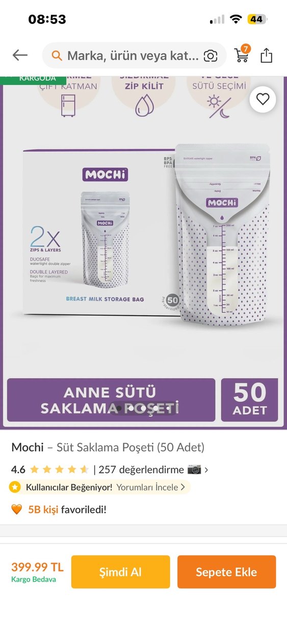 Mochi anne sütü saklama poşetleri, 50 adetlik pakette, çift katmanlı ve çift fermuarlı tasarıma sahip, sütü taze tutar. Ölçü işaretleri net ve kullanımı kolaydır. 0 dır paketi bile açılmamıştır