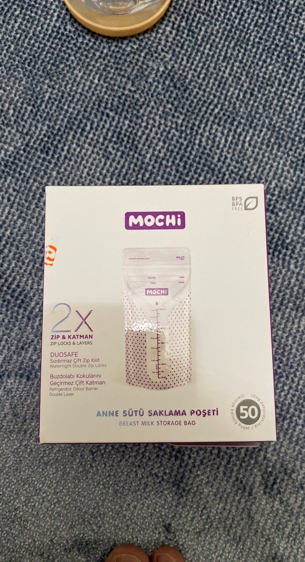 Mochi markalı anne sütü saklama poşetleri,pakette, çift katmanlı ve çift kilitli yapısıyla sızıntı ve koku yapmaz. BPA ve BPS içermez. 26 adet vardır içinde