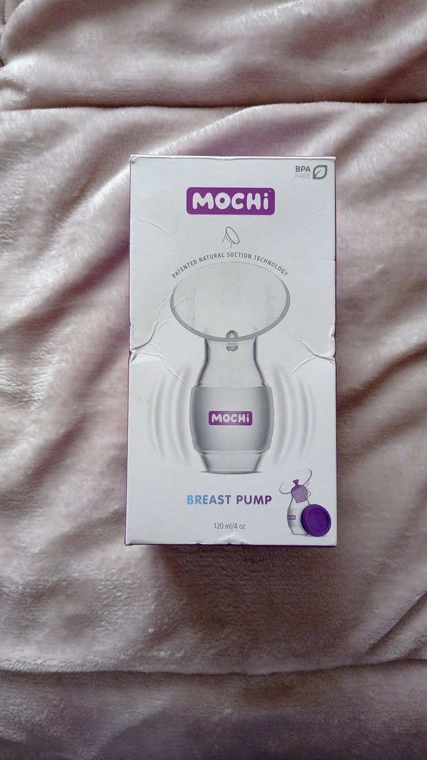 Mochi göğüs pompası, patentli doğal emme teknolojisine sahip ve BPA içermez. 120 ml kapasitelidir ve açık beyaz renktedir.