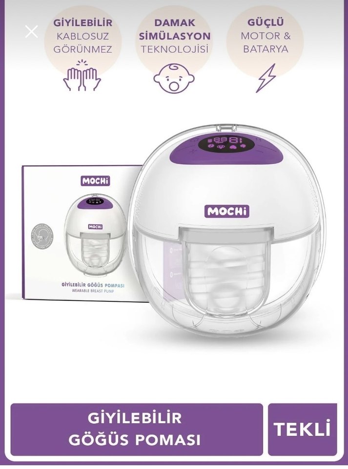 Mochi mor renk giyilebilir göğüs pompası kablosuz, güçlü motor ve batarya ile damak simülasyon teknolojisine sahiptir.