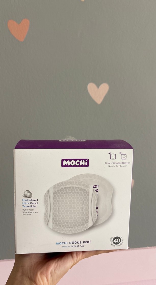 Mochi göğüs pedleri, gün ve gece kullanımı için yüksek emiciliğe sahip HydroPearl yüzeye sahiptir. 40 adet ped içerir. ️
