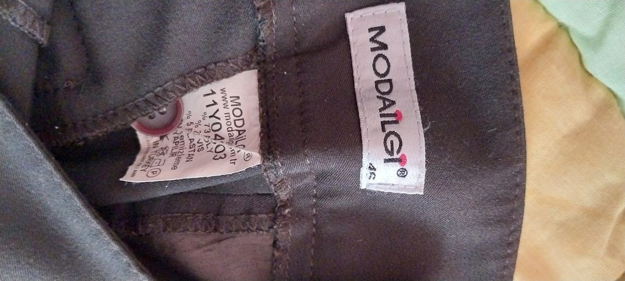 Modailgi markasına ait kahve sokak stiline uygun erkek rozeti. V0403 model numarası ve etiket bilgileri mevcut. ️