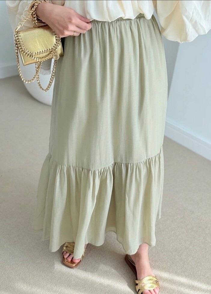 Çağla yeşili mükemmel pastel renkte, yumuşak modal kumaş , volan detaylı uzun etek. Günlük kullanıma uygun bohem tarzda. Renk tam bahar yazlık uzun tesettür uyumlu etek iç astarlı