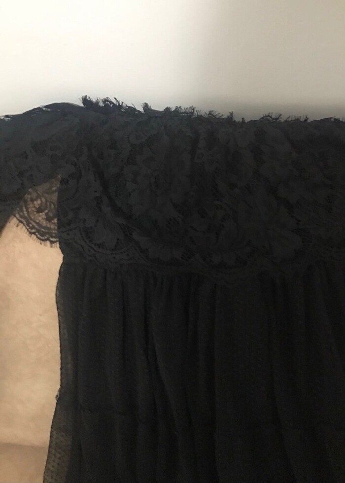 Madonna yaka uzun kol komple kollar dantel çan elbise