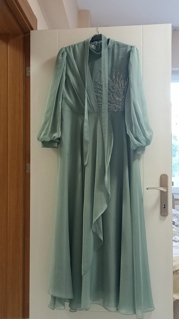 mint yeşili tesettür abiye 48 beden ,46 beden ile uyumlu ,1 defa kullanıldı,şal dahil satılıktır