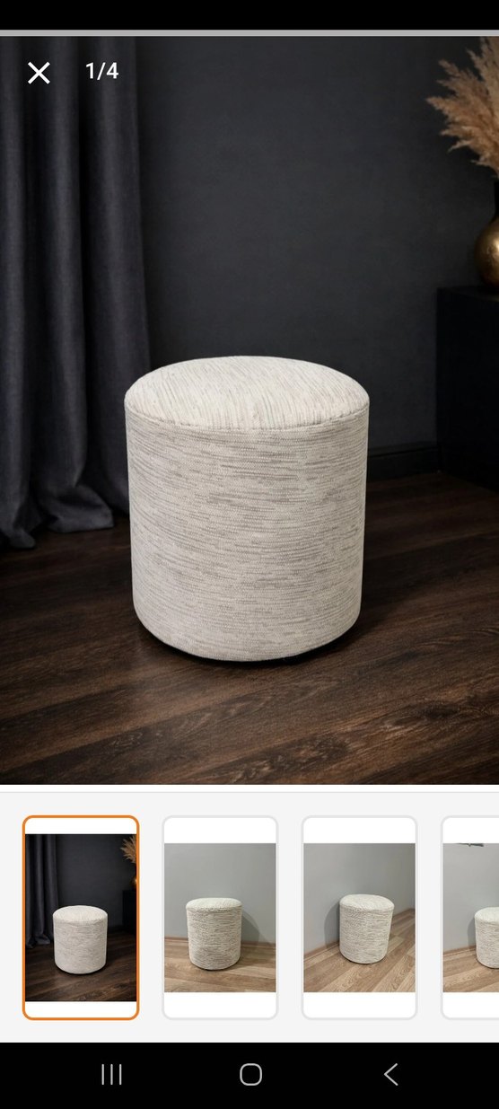 Bej ve gri tonlarda, desen içermeyen, modern silindirik bir puf. Her odaya sade bir şıklık katmak için uygundur. ️