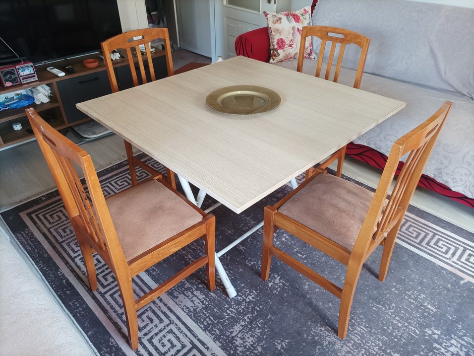 Düz, desensiz yüzeye sahip modern bej yemek masa , sade ve temiz bir yemek ortamı için uygundur. 6 adet ahşap sandalye ile beraber satılıktır ürünleri evde yerim olmadığı için ve ihtiyaç fazlasından kaynaklı satılacaktır bilgi için lütfen mesaj atınız diğer ilanlara profilimden bakabilirsiniz