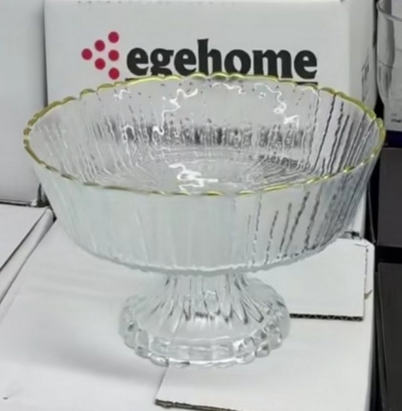 Egehome markalı, modern klasik tarzda, parlak beyaz renkli, baskılı desenli ayaklı servis tabağı. Cam yüzey dokuludur ve dekoratif görünür. ️