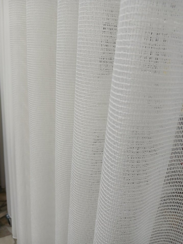 Modern tarza uygun, hafif ve ferah bir görünüm sağlayan beyaz, düz tül perde. İnce kare dokusu ile sade bir şıklık sunar. istenilen ölçülere göre dikilir.
