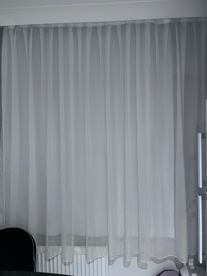 Modern tarzda, desen içermeyen beyaz tül perde, yumuşak ışık geçirir. ️