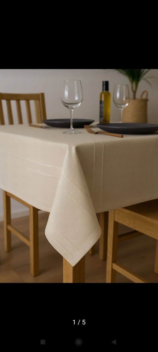 Beyaz, desensiz masa örtüsü, ince dikiş detaylarıyla modern yemek masalarına uygundur. ️