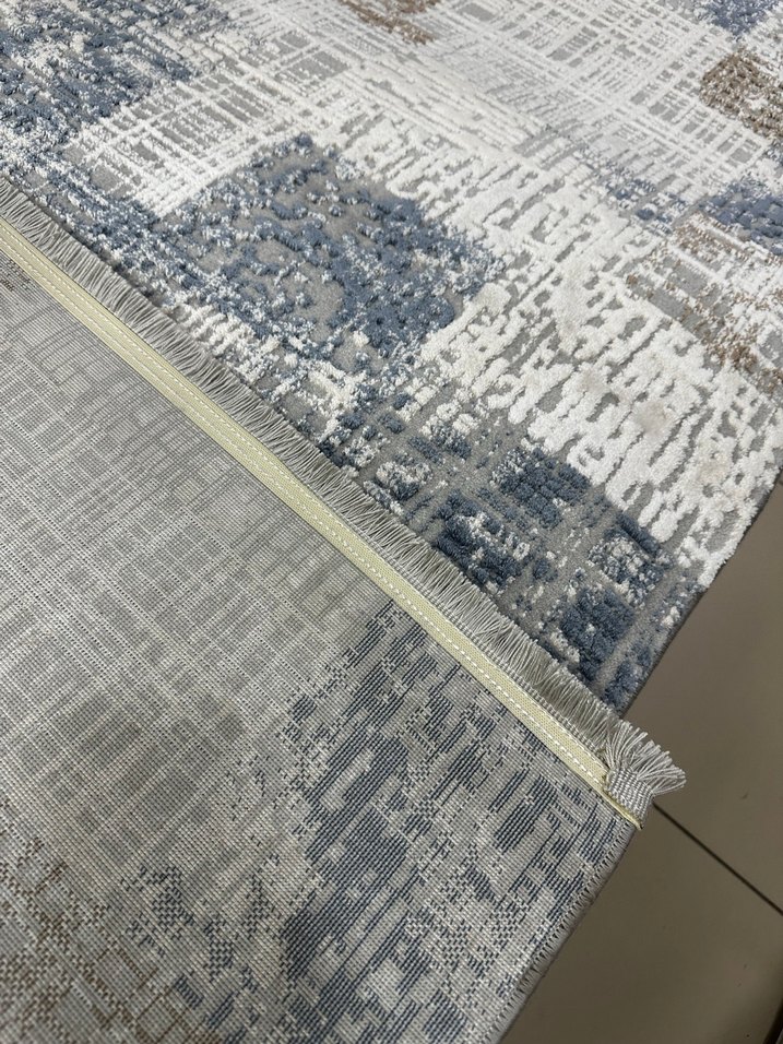 Gri tonlarında baskılı desene sahip bu modern halı, her odaya şıklık katan yumuşak dokulu bir üründür.