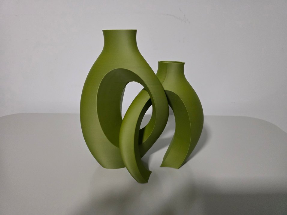 Modern haki vazo seti.Dairesel tasarıma 3D yazıcı ürünüdür.