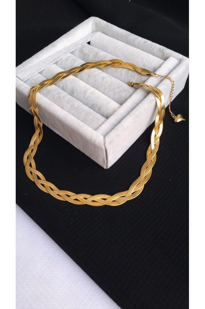 modern klasik tarzda altın renkli kolye, günlük kullanıma şık ve gösterişli bir dokunuş katıyor. ✨ Çelik kararmaz solmaz