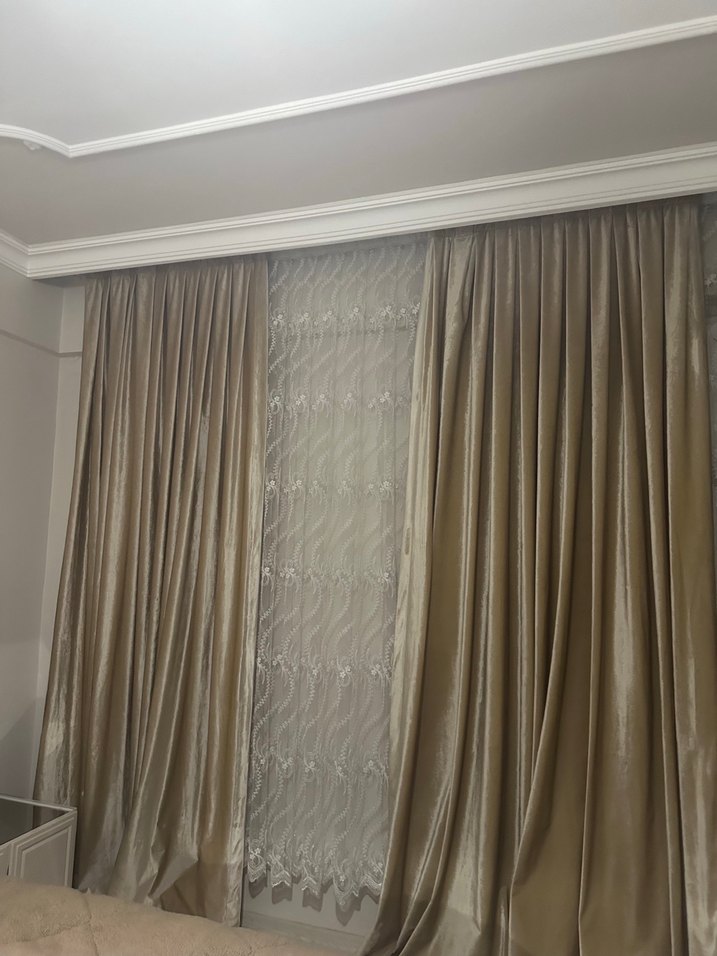 Modern Klasik Bej Nakışlı Perde