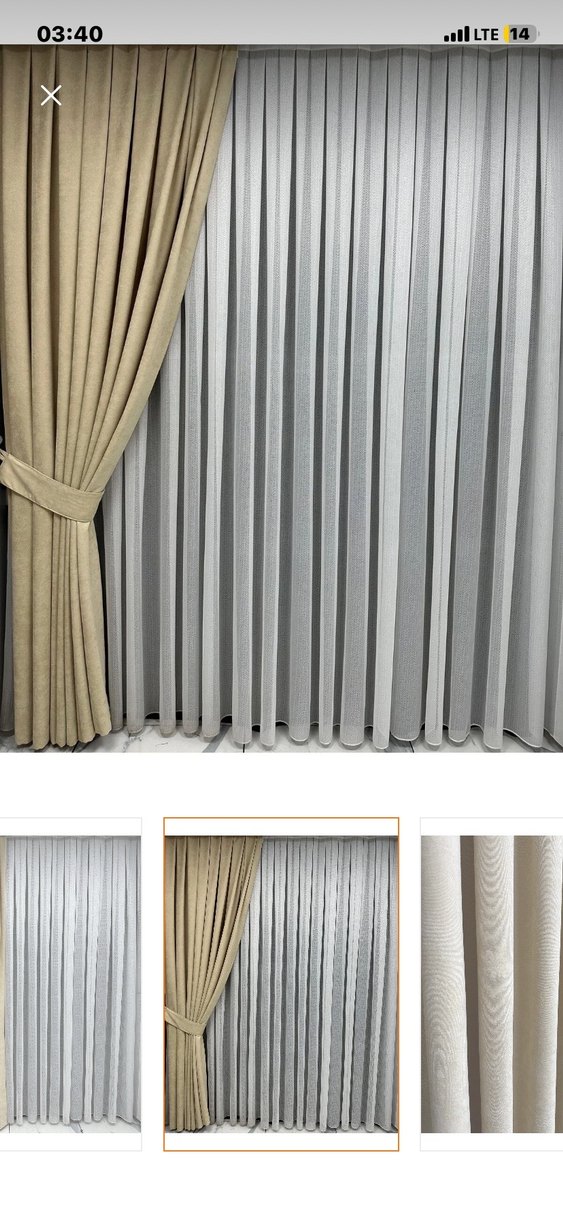 Perde, modern klasik tarzda, bej renkte ve desensizdir. Yumuşak bej kumaş ile şeffaf gri katman dengeli bir görünüm sunar. 2 kanat 80x250