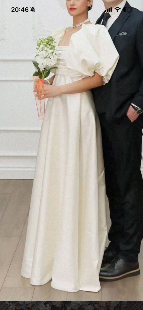 Bir kere nikahımda giyindim. Hiç bir defosu yok. Yıkandı yeni gibi. Uzun, askısız A-line gelinlik, modern klasik tasarım, askılı kollar ve regular fit ile Paris tarzı zarafeti yansıtıyor.