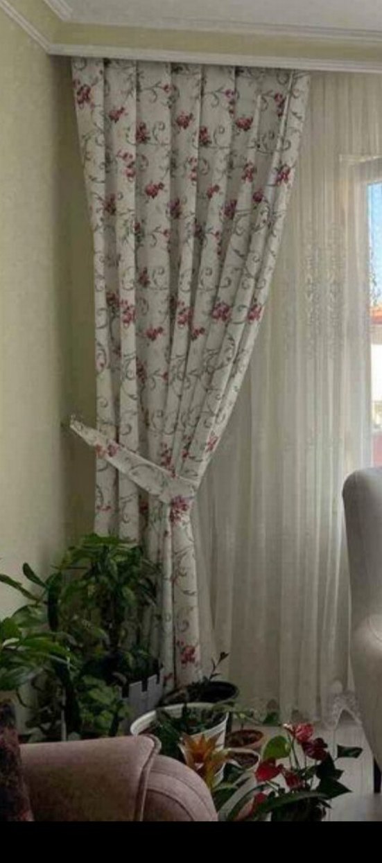 Modern klasik tarzda, beyaz zemin üzerine gri ve kırmızı tonlarda çiçek desenleri bulunan perde. Uyumlu bağlama ipi ve yumuşak kumaşa sahiptir. 4 kanat