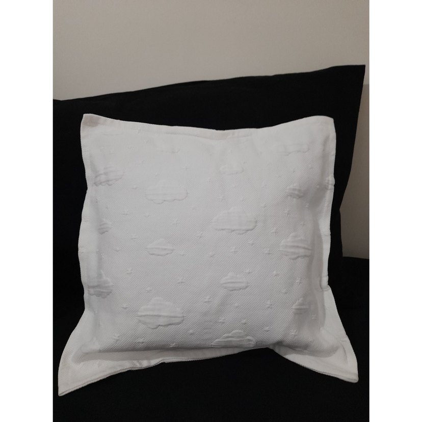 Modern klasik tarzda, beyaz renkte ve desensiz olan bu kırlent, hafif dokulu detaylara sahiptir ve mekana zarif bir dokunuş katar. ️üzerinde bulut detayı vardır