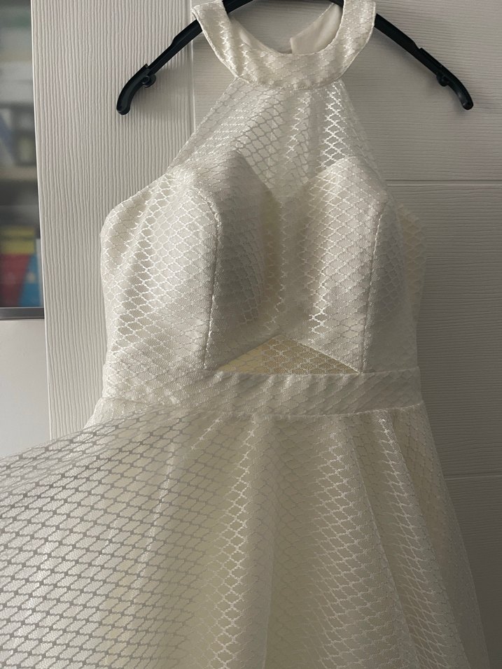 Modern Klasik Beyaz Mini arkası kuyruklu abiye