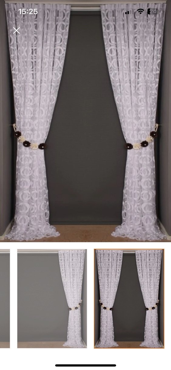 Modern klasik tarzda, nakış işlemeli beyaz perdeler, dekoratif bağcıklarla şıklık katar. Eni 280 boyu 270 dir.yıkama torbaısyala bırlıkte gelır.
