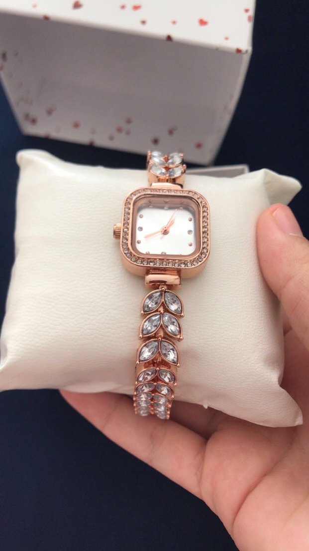 Çok şık bi saat ful taş detaylı hiç kullanılmadı kutusunda bileğide ayarlanabilir kullanmadığım için siz alıp kendinize göre bileğini yaptırabilirsiniz rengi de gold rose çok tatlı bi rengi var ✨