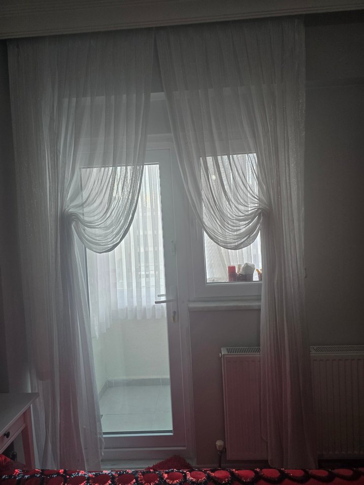 Modern klasik tarzda, desensiz beyaz tül perdeler. Hafif ve ferah bir ortam sağlar, doğal ışığı yumuşakça süzer. Simli bambu.