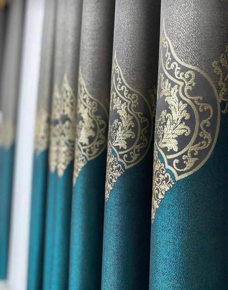 Modern Klasik Desenli Gri Mavi Perde