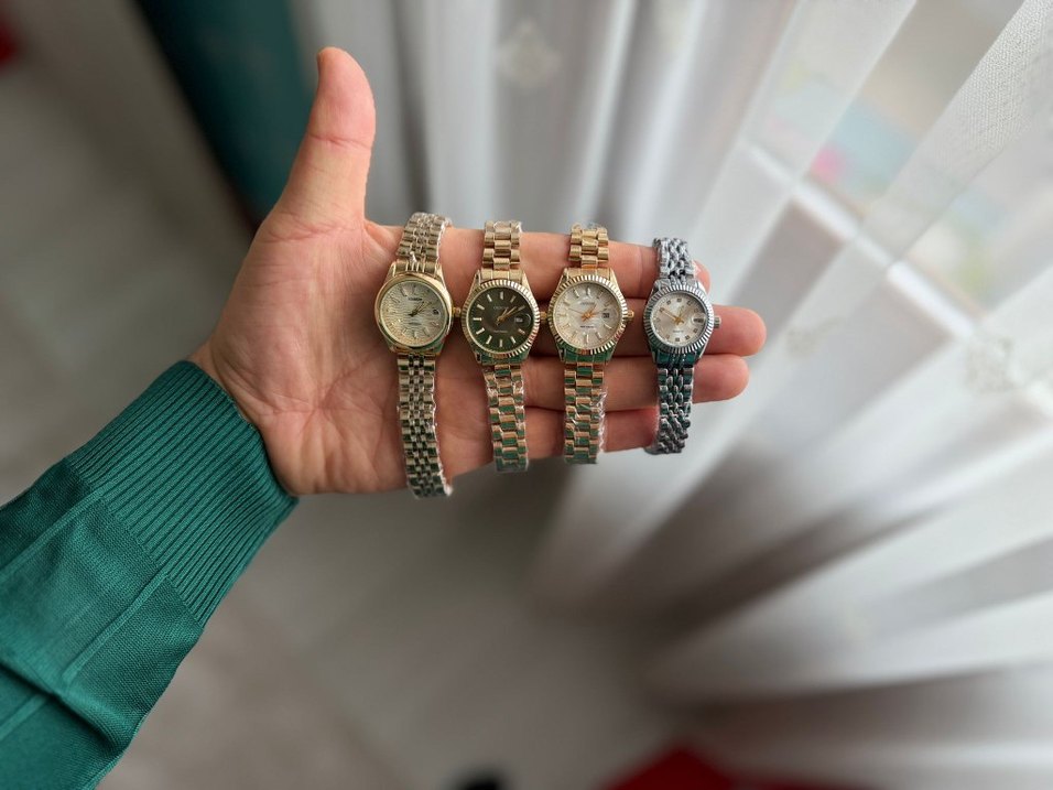 Hafif gold tonunda, düğmeli kapanışa sahip modern klasik tarzda kadın kol saati. Zamansız şıklık sunar. ⌚