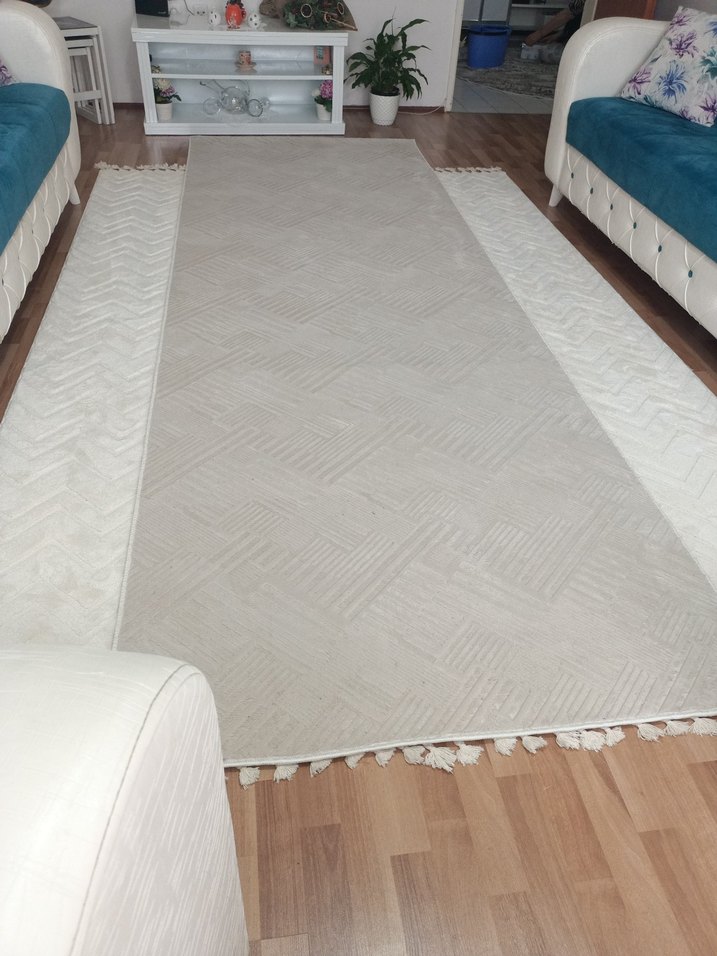 bej yolluk eni 125 boyu 350Modern klasik tarzda, gri ve beyaz renklerde, desensiz tasarıma sahip halı. Her odaya sakin ve şık bir dokunuş katar.