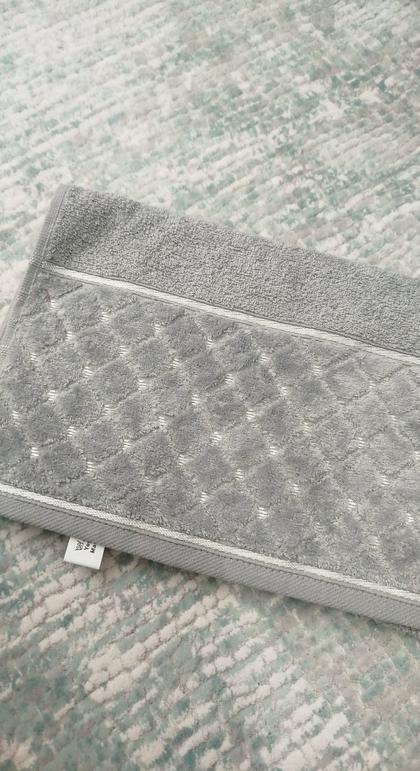 Yumuşak dokulu, modern klasik tarzda gri havlu. Günlük kullanım için uygundur.
