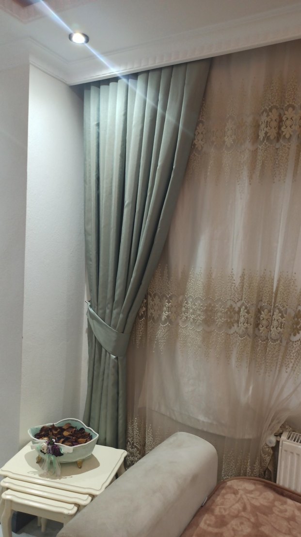 2 parçadır Eni 200 cm dir Boydan 208 cm dir Çift katlıdır kalitelidir