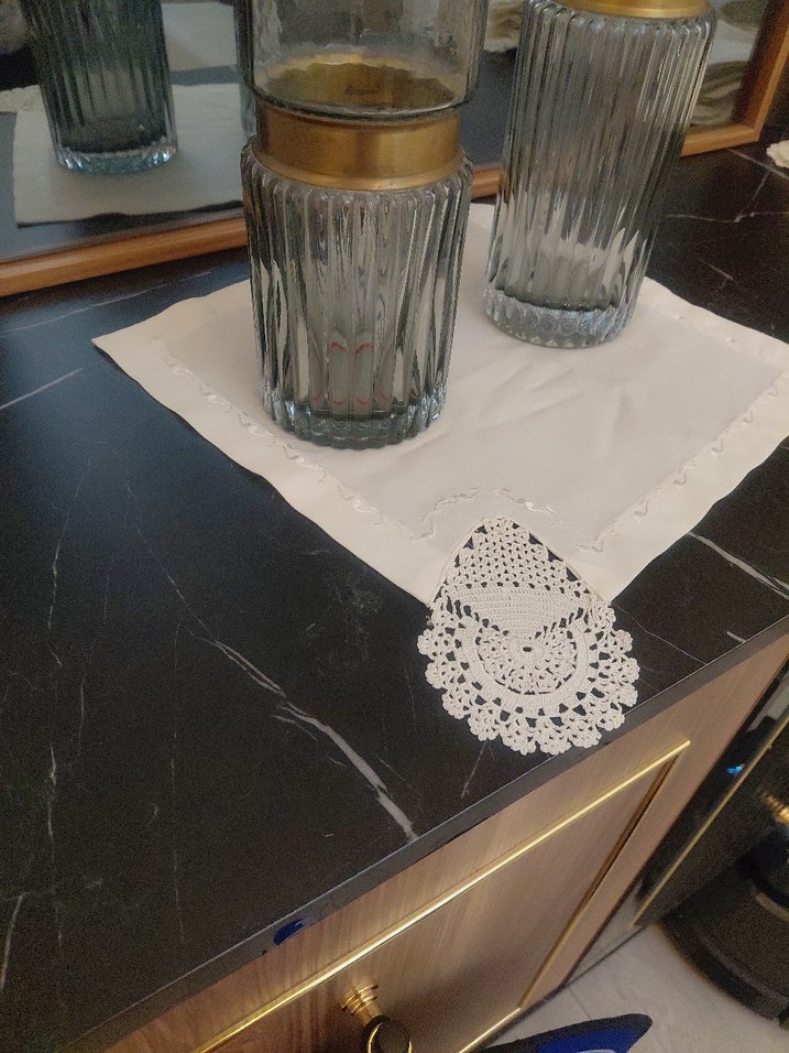 Modern klasik tarzda, işlemeli detaylara sahip beyaz masa örtüsü, sofranıza zarif bir dokunuş katar. 20 adet pecete dantel ortu sifir kullanilmadi
